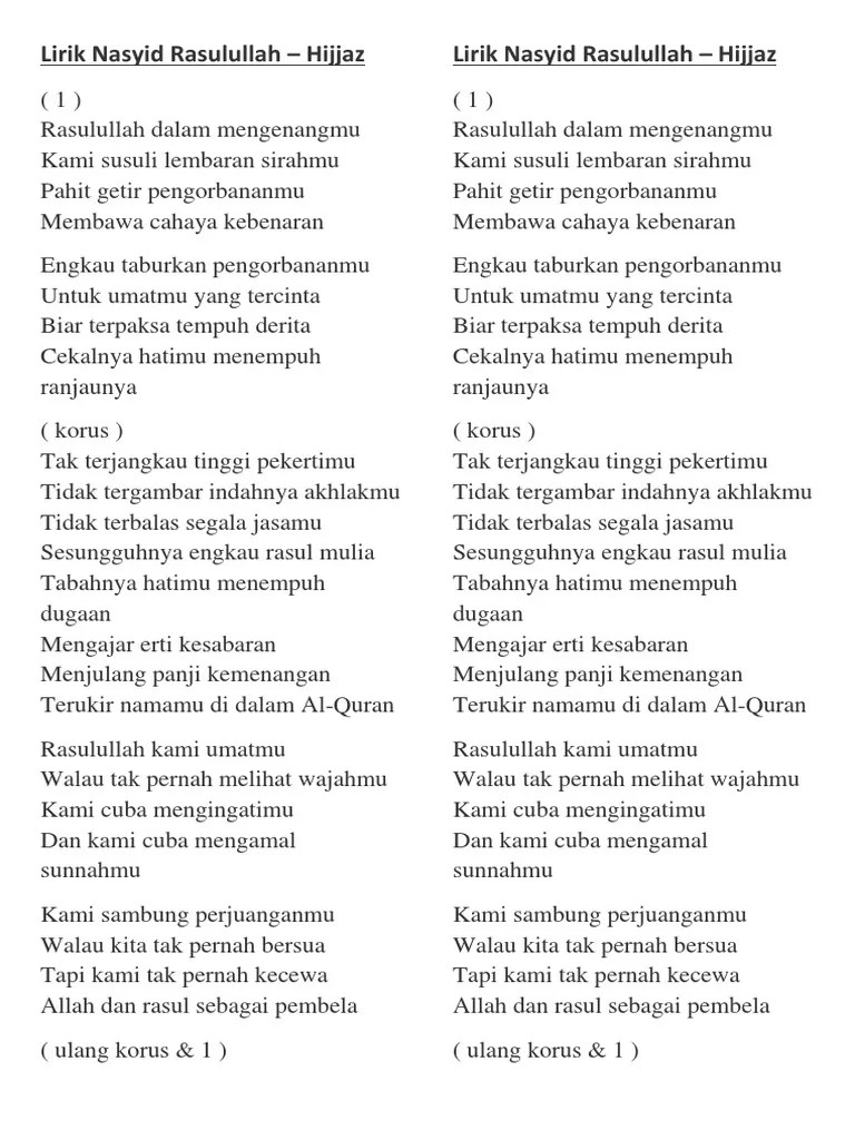 Lirik Lagu Rasulullah : Tolong Buatin Saya Lirik Lagu Tentang Hijrah Nabi Muhammad Saw Dan Nadanya Ya Brainly Co Id